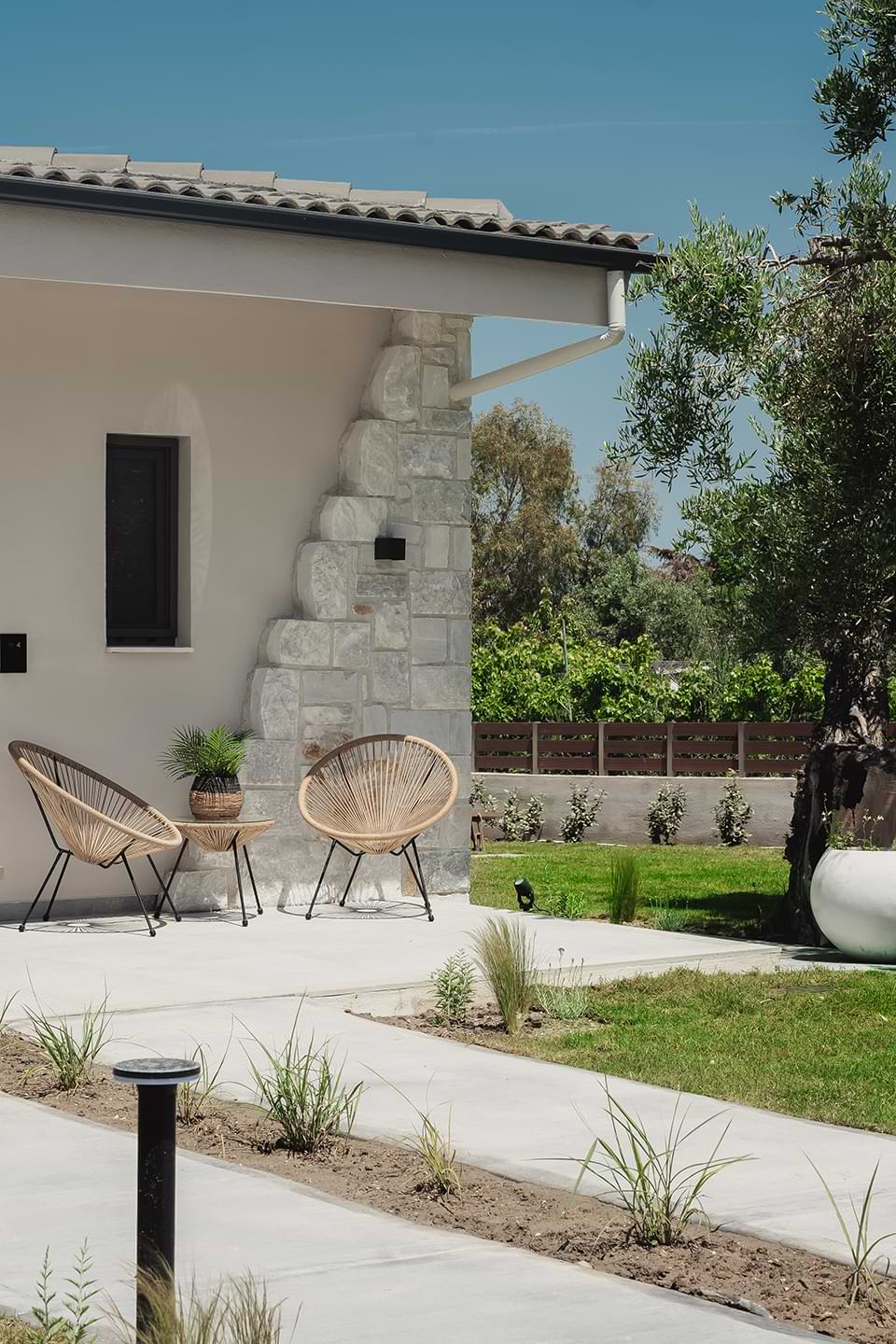 Εμπνευσμένο από το μικρό μονοπάτι που οδηγεί στην παραλία, το κατάλυμα συνδυάζει αρμονικά το φυσικό περιβάλλον με τη διακριτική πολυτέλεια. Πέτρα, ξύλο και πλούσια βλάστηση δημιουργούν ένα ειδυλλιακό τοπίο χαλάρωσης, ιδανικό για να απολαύσετε ήρεμες στιγμές διαβάζοντας ένα βιβλίο στην καταπράσινη αυλή ή χαλαρώνοντας στα lazy beds.