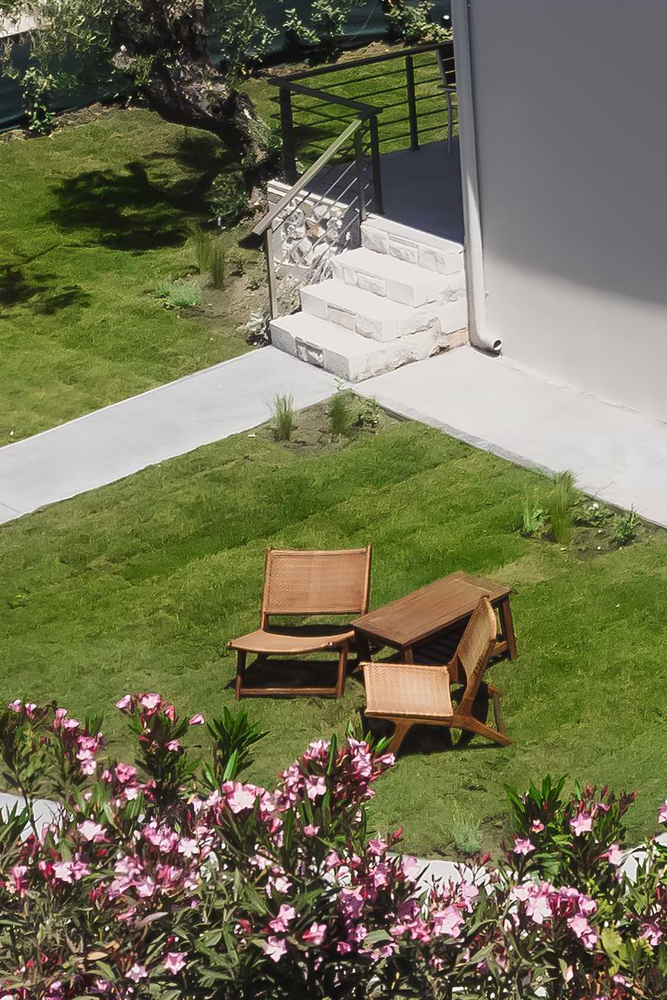 Μόλις τρία λεπτά με τα πόδια από το Blue Carpet και την υπέροχη παραλία, αλλά σε απόσταση από τον πιο ζωηρό ρυθμό τους, εδώ θα βρείτε τραπεζάκια στη σκιά, άνετα lazy beds και έναν κήπο που σας προσκαλεί να καθίσετε, να διαβάσετε, να χαλαρώσετε. Μια αίσθηση ζεστασιάς, ηρεμίας και ομορφιάς διαπερνά κάθε σημείο.