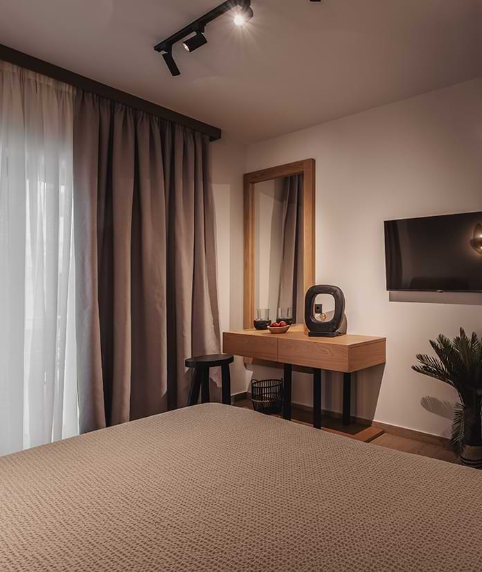 Η κάθε σουίτα του My Path To The Sea έχει σχεδιαστεί για να προσφέρει μια ξεχωριστή εμπειρία διαμονής, με απόλυτη άνεση, διακριτική πολυτέλεια και μοναδική αισθητική. Το boho ύφος με φυσικά υλικά, η γήινη παλέτα και οι λεπτομέρειες από ξύλο και rattan δημιουργούν έναν χώρο που αποπνέει ηρεμία και φροντίδα.